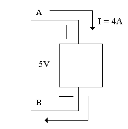 | Here the element is absorbing Energy Pabs = VI = 5V(4A)= 20 Watts, or we can say Pdel = -20 Watts Note: Pabsorbed = -Pdelivered |