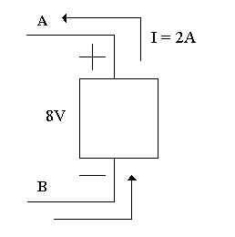| Here the element is delivering Energy Pdel = VI = 8V(2A)= 16 Watts, or we can say Pabs = -16 Watts Note: Pabsorbed = -Pdelivered |
