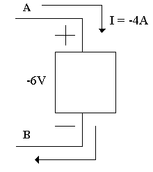 | Here the element is absorbing Energy Pabs = VI = -6V(-4A)= 24 Watts, or we can say Pdel = -24 Watts Note: Pabsorbed = -Pdelivered |